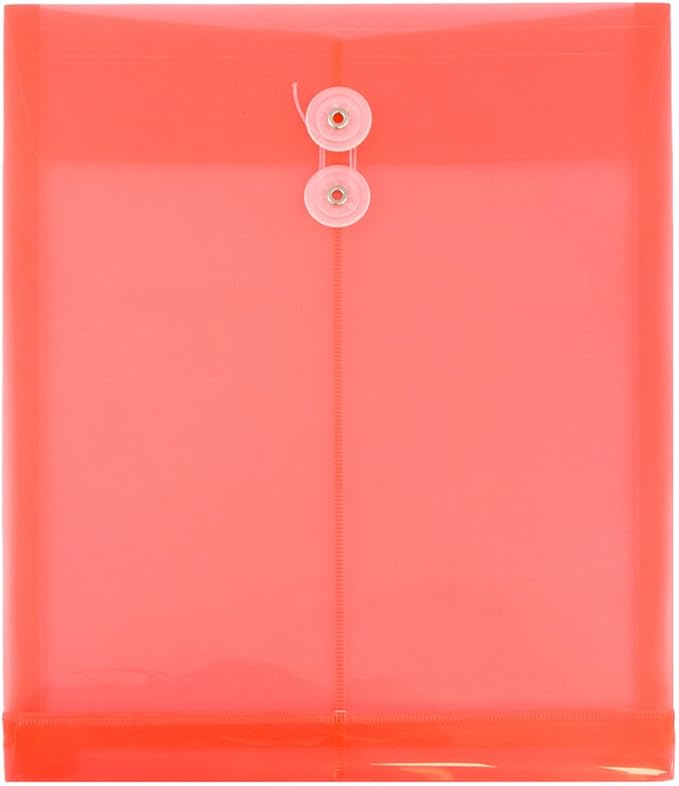 JAM PAPER Plastic Envelopes with Button & String Tie Closure - Letter Open End - 9 3/4 x 11 3/4 - Assorted Colors - 12/Pack