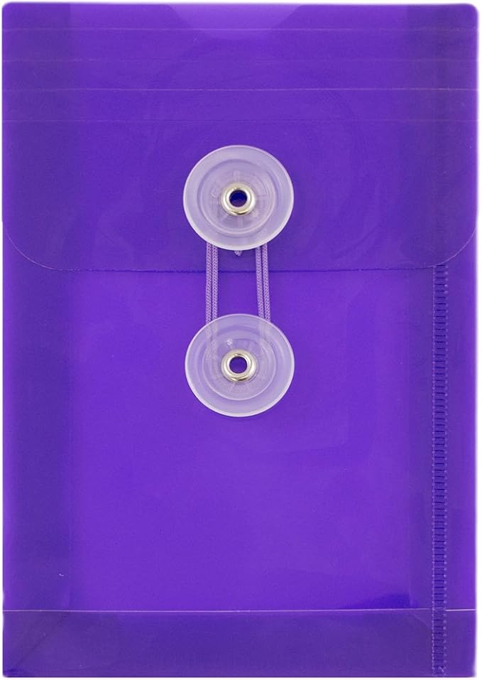 JAM PAPER Plastic Envelopes with Button & String Tie Closure - 4 1/4 x 6 1/4 - Assorted Colors - 12/Pack