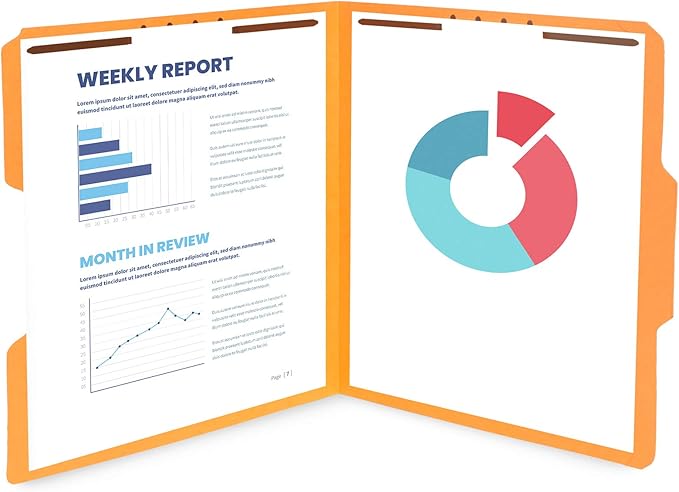 - Maintains quality during use for years with our durable USA made paper folders with durable 11 pt colored paper stock and reinforced 1/3 cut top tabs