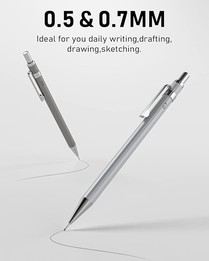 - 【Nicpro MB1000 Mechanical Pencil Set】Come With 8 PCS mechanical drafting pencils ,in 4 elegant metallic color, including 0.5 mm & 0.7 mm ,8 tubes of HB lead refill : 0.5mm & 0.7 mm (60pcs/tube), 9pcs of cap eraser refills, 3pcs soft 4B erasers and a sturdy mechanical pencil case