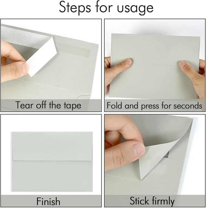 A7 Gray Invitation 5x7 Envelopes - Self Seal, Square Flap,Perfect for 5x7 Cards, Weddings, Birthday, invitations, Graduation, Baby Shower, 5.25 x 7.25 Inches, 100 Pack, (Gray)
