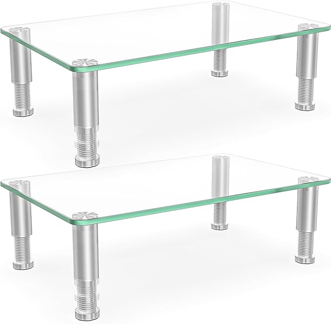 - Easy Assembly and widely usage: Combine the tempered glass and stainless steel legs through the screw, 2 Pack ,Can be used in Monitor Riser ,Printer Stand ,Computer Stand ,Laptop Riser,Desk Shelf & Xbox one