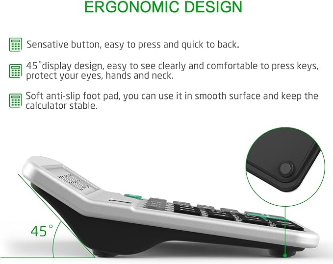 - 【BIG BUTTON DESIGN】Large non-stick plastic button, new material, more durable. The calculators adopt scientific big button design in line with the use of human habits and comfortable for touch