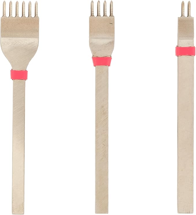 - Stitching Chisel Set: Enhance your leather hole punching process to make your leather ready for stitching projects with our leather stitch punch set; designed with 3 mm spacing, this leather punch set includes 2 prong, 4 prong, and 6 prong tools