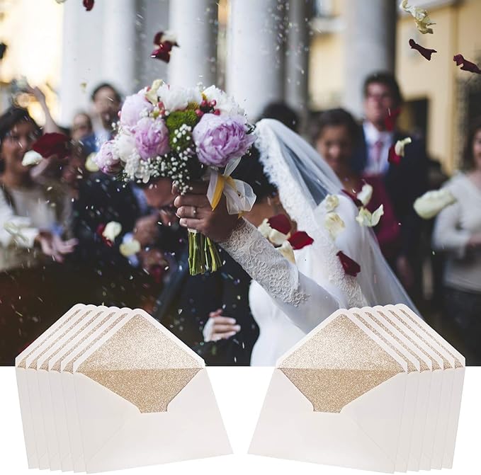 - π Color: Gold Glitter Liner+ Ivory Envelopes, 120g pearl paper with shinny.