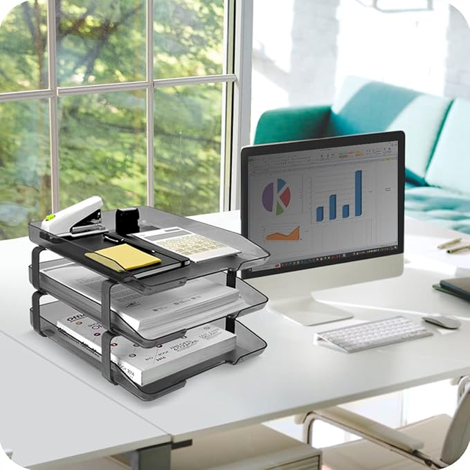 - High Sturdy Brackets for Extra Height Space: The organizer includes sturdy brackets that provide extra height between trays, allowing for more storage space and easier access to documents;