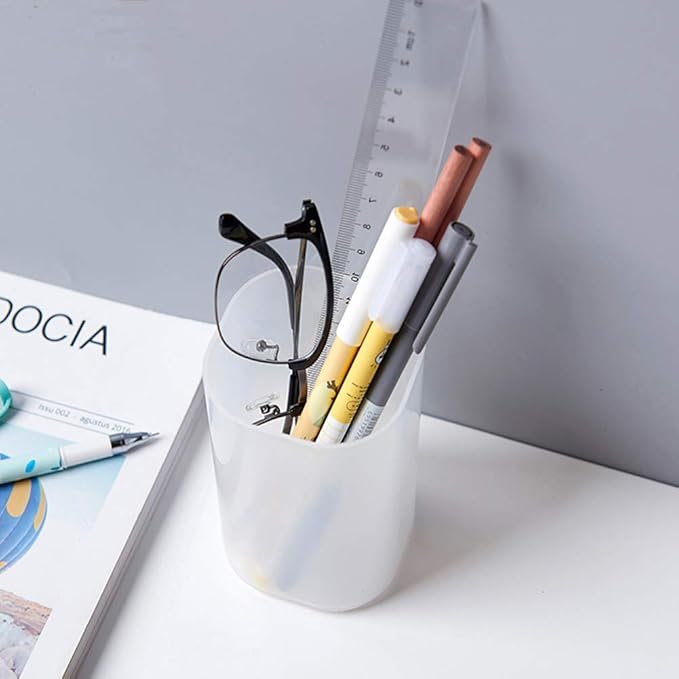 Marbrasse 5 Pcs Desk Organizer for Office, School, Home Supplies, Translucent White Pen Storage Holder, Set of 3, 2 Cups 14 Compartments (White)