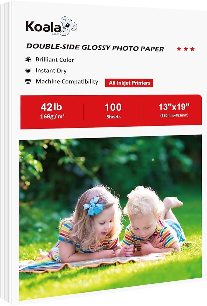 Koala Brochure Paper Double Side Glossy for Printing Photo 13X19 Inches 100 Sheets Compatible with Inkjet Printer 42LB