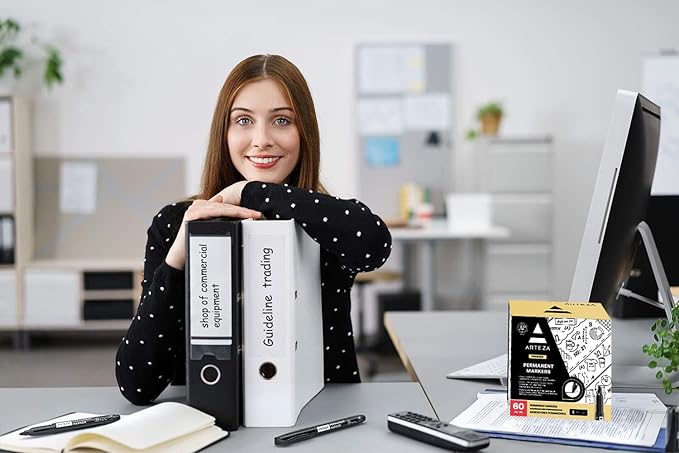 ARTEZA Permanent Markers Black, Bulk Set of 60, Fine Tip, Waterproof