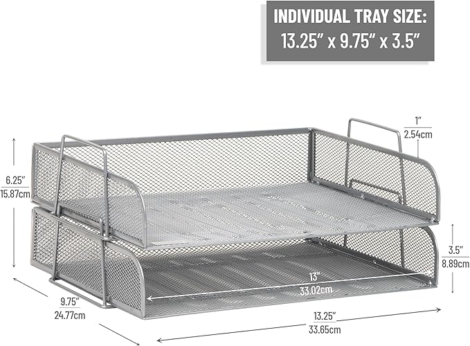- Sleek & Functional Design: Metal mesh trays hold letter-size documents and enhance organization in any workspace