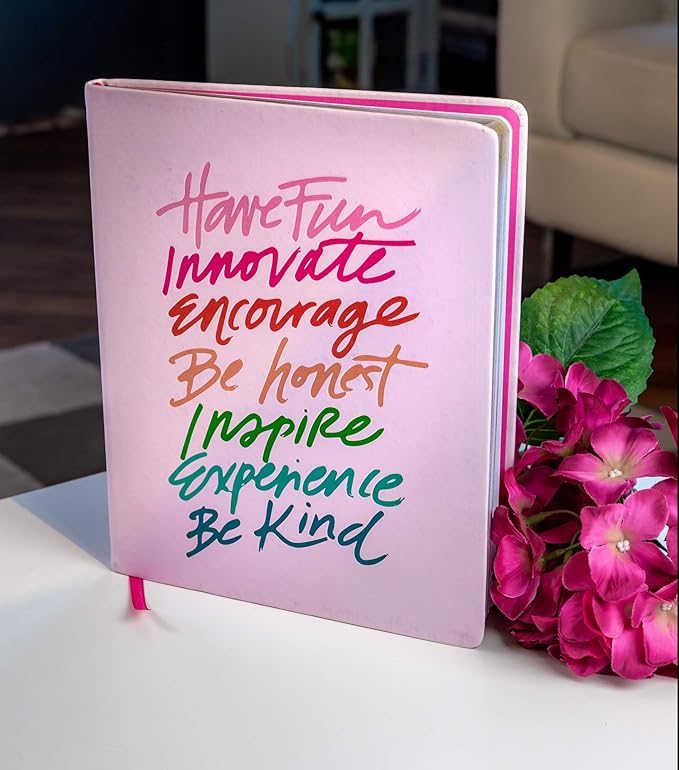 - The 8 by 10 journal features a range of colorful, pastel, and vibrant combinations, different textures and premium materials, and inspirational quotes that will cheer you up and help with self-reflection and productivity. Its round corners and sturdy hardcover make this cute journal a great companion for everyday life. Comfortable to hold and to carry around, just throw it in a bag or backpack, and you’re good to go