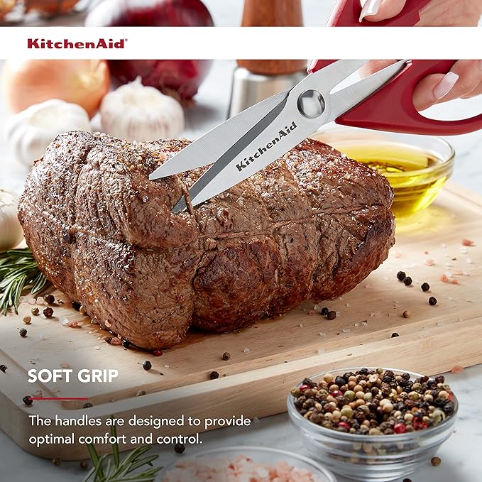 KitchenAid All Purpose Kitchen Shears with Protective Sheath Durable Stainless Steel Scissors, Dishwasher Safe, Soft Grip Comfort Handle, 8.72 Inch, Red
