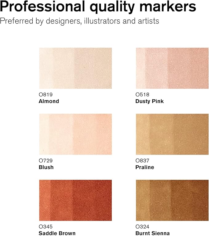- Set contains Almond, Dusky Pink, Blush, Praline, Saddle Brown, and Burnt Sienna