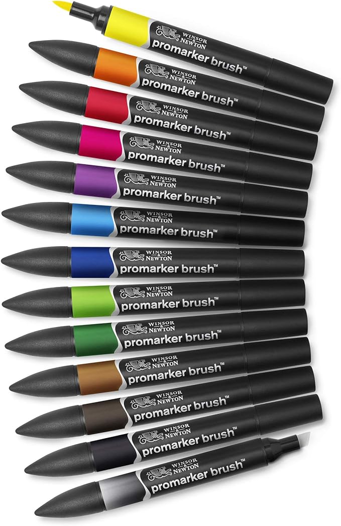 Winsor & Newton ProMarker Brush Set, 12 Count, Vibrant Tones