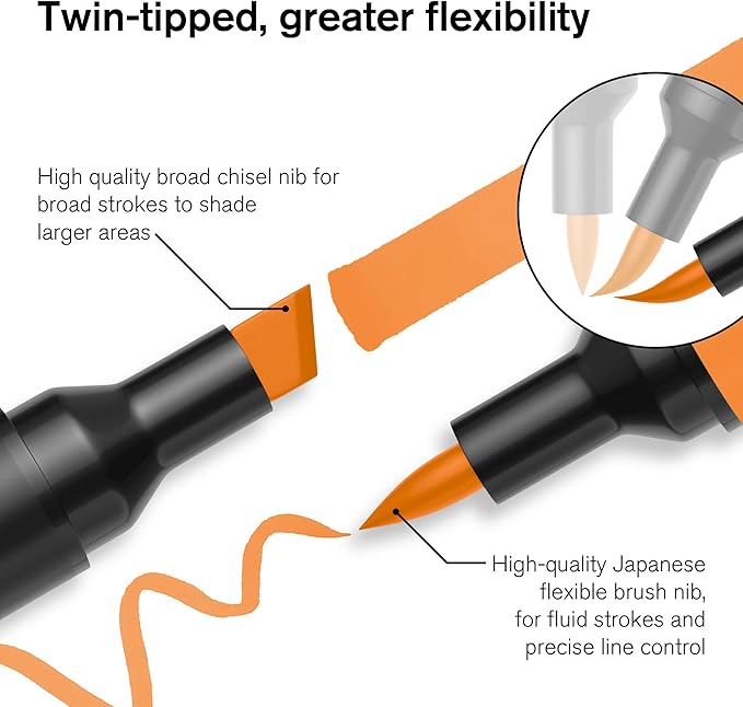 - DUAL TIPS: All graphic markers have a brush tip for full coverage and a broad chisel nib for a variety of line widths