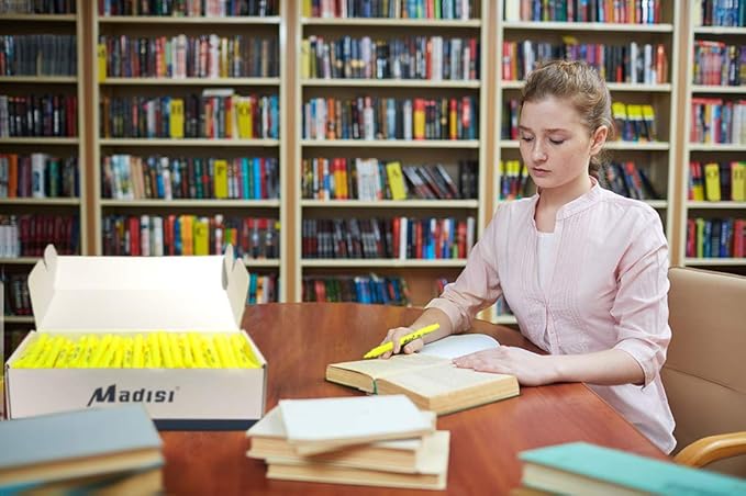 Madisi Highlighters, Chisel Tip, Fluorescent Yellow, Bulk Pack, 144-Count