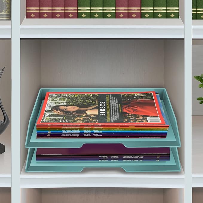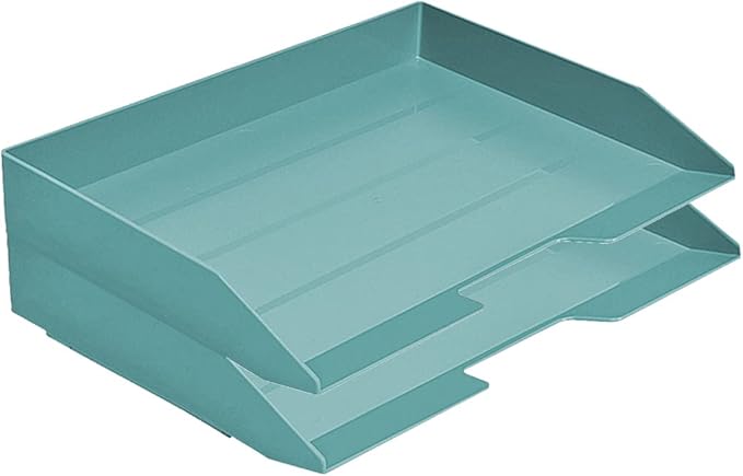 Acrimet Stackable Letter Tray 2 Tier Side Load, Plastic, Desktop File Organizer (Solid Green Color)