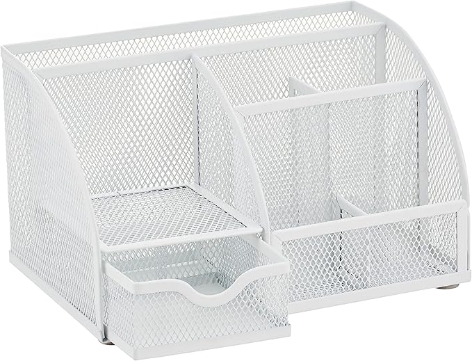 Exerz Desk Organizer White Office Desk Accessories Supplies Office Storage Desktop Pencil Pen Holder with Drawer Home Workspace