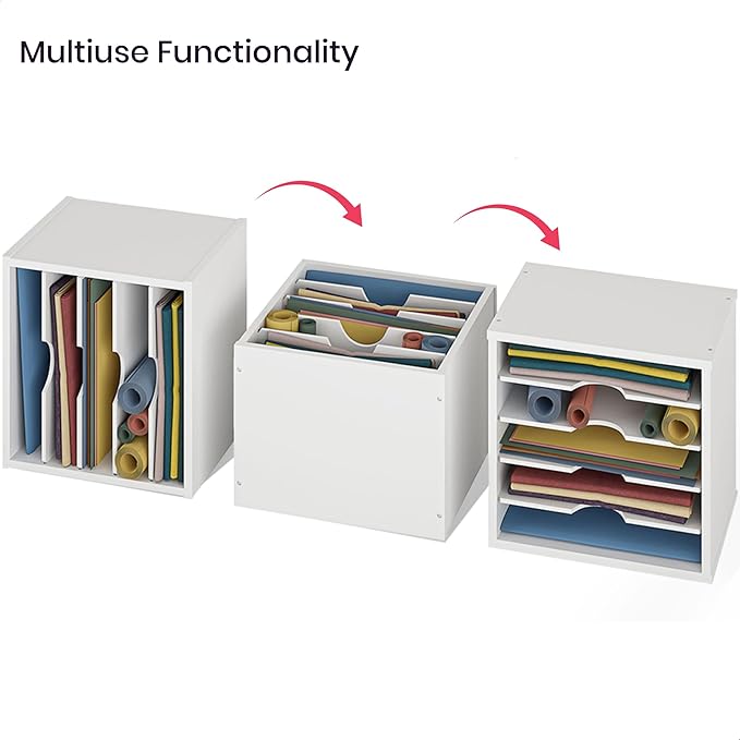 - MULTI-FUNCTIONAL: This classroom paper organizer is stackable with 3-way functional layout as needed: horizontal for standard documents, vertical for books or upright as a tub file bin