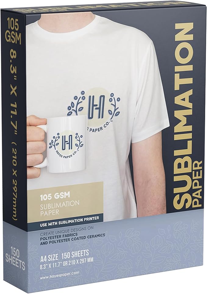 Hayes Sublimation Paper 105gsm A4 Size (8.3" x 11.7") – 150 Sheets | Works With Sublimation Ink & Blanks | Compatible With Sublimation Printers | T-Shirts, Mugs, Tumblers and More