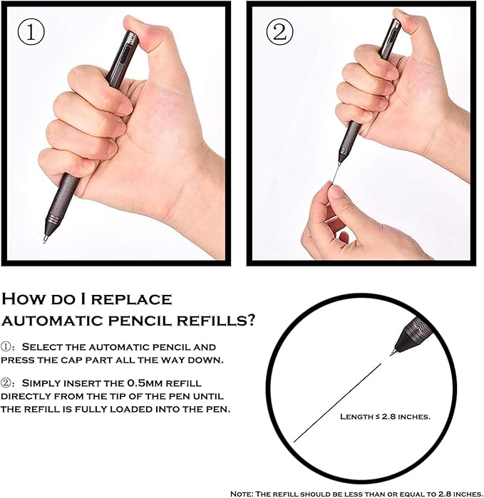- 45° Instructions: If you choose the 0.5mm automatic pencil. Please put the 0.5 side 90° vertical upward. Then press