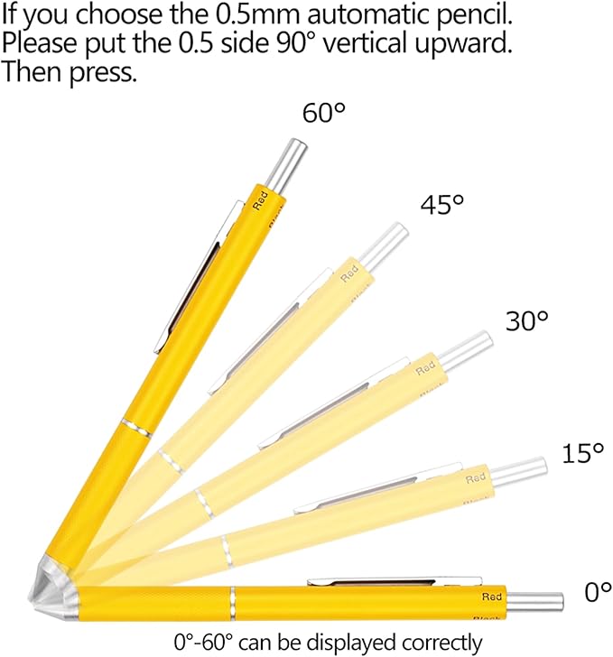 - 45° Instructions: If you choose the 0.5mm automatic pencil. Please put the 0.5 side 90° vertical upward. Then press
