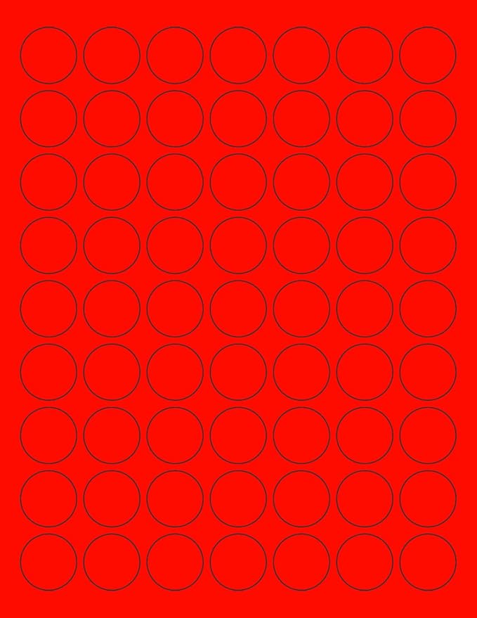 8-1/2 x 11" Neon Color High Light Fluorescent Labels for Laser & Inkjet Printer (RED Fluorescent, 1" Round - 63 per Page - 6300 Labels)