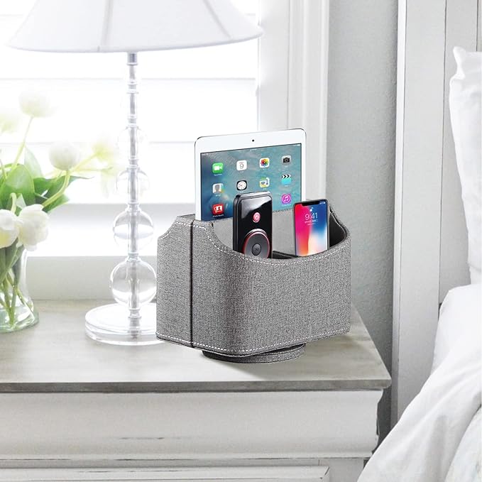 - Rotatable Remote Control Holder: Improved swivel base for smoother 360 rotating and more durable, allows easy access to items from any direction. Concise and practical desk caddy for accessories organize and stuff storage, add a room decor aesthetic for office & home.
