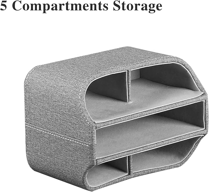 - Large Capacity Remotes Holder : 5 sections storage box for various sizes of remote controllers for cable box, roku, apple tv, amazon fire TV, blu ray, soundbars etc. for cell phone, wii, gaming consoles, small electronic media accessories, or makeup brush pen and art supplies, etc. a functional desktop organizer for kids and women.