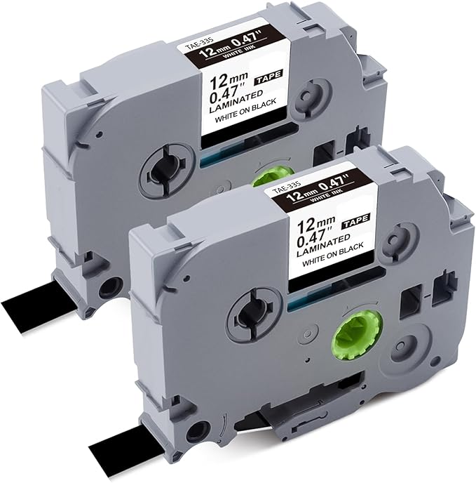 - 【Package includes】: 2-Pack TZe-335/TZE335/TZ335/TZ335s/TZ-335/TZc-335 Replacement for Brother P Touch Label Tape 12mm 0.47 Laminated Black, Color: White Print on Black Tape. Width: 1/2" (12mm). Length: 26.2' (8m)