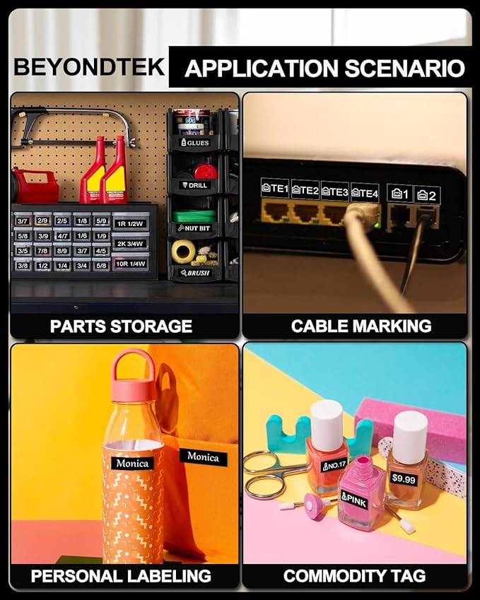 - 【P Touch 12mm Black Tape】: Indoor or outdoor labels,These Laminated label tapes are Water Resistant, Grime Resistant, Grease Resistant, Temperature Resistant, Abrasion Resistant, Chemical Resistant as well as Fading Resistant.