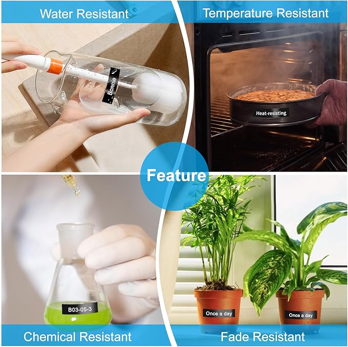 - Product Quality: Our TZe-335 unique laminated tape technology ensures that a layer of clear polyethylene laminate protects your words.Water Resistant, PV Resistant, Temperature Resistant, Chemical Resistant, Fade Resistant, Abrasion Resistant, Strong Adhesion