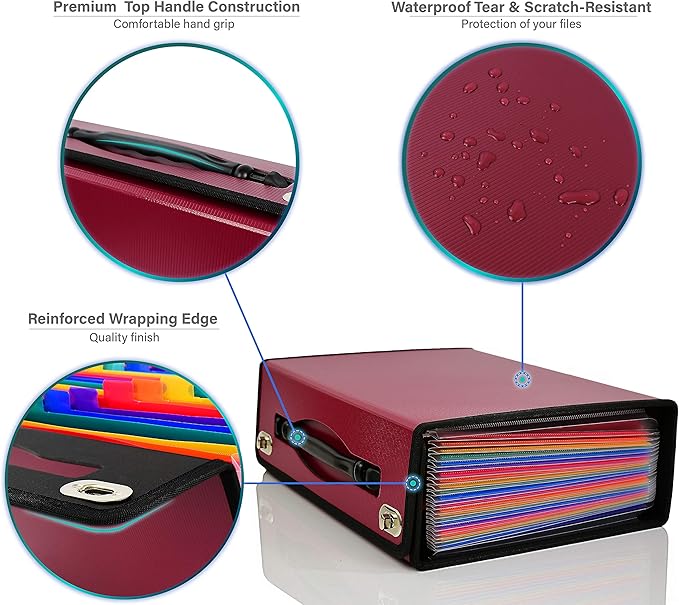 - Sturdy and ergonomic handle provides excellent grip and provides easy to maneuver around office, school, home and anywhere else you have need to take your important documents!