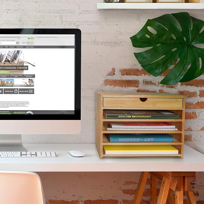 - [STYLISH ORGANIZATION]: : A beautiful and durable bamboo paper organizer. swiftly declutter your desk, kitchen and home office. Sturdy and stylish.