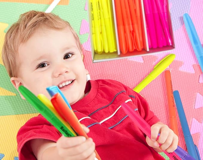 - 6 fluorescent colors in yellow, pink, blue, green, orange, and purple