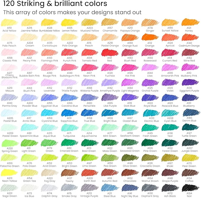 - Bright and Vibrant Colors: This set includes 120 fine point markers that deliver eye-catching content. Every pen is labeled with the color number on the barrel and the name for easy identification.