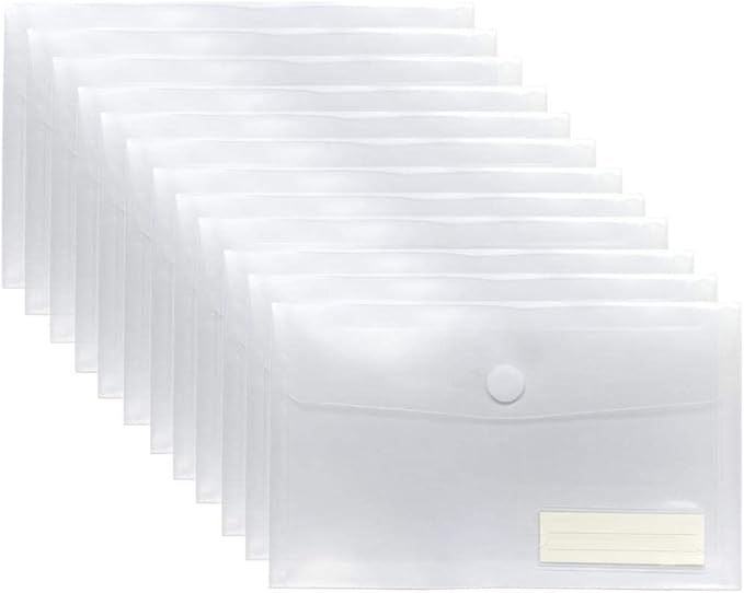 A5 Plastic Clear Envelopes Folder with Hook & Loop Closure 6x10" Invoice Receipt Cash Organization with Label Pocket 12pcs