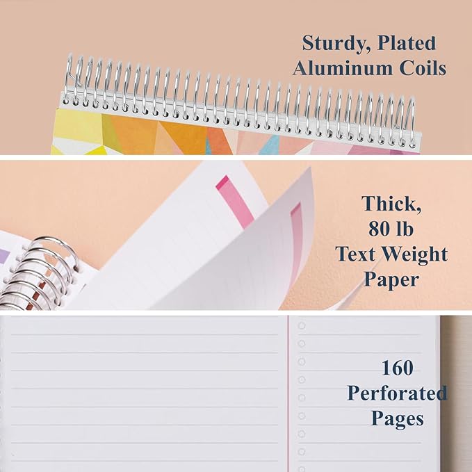 - PREMIUM PAPER: Crafted with 160 perforated pages of thick, rich 80# text weight paper, this spiral bound notebook delivers exceptional quality and durability. The premium paper of this notebook journal is designed to provide a smooth and satisfying writing experience, accommodating a variety of writing tools, including pens, markers, and highlighters, without worrying about bleed-through or smudging.