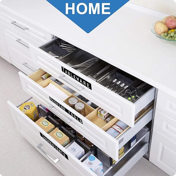 - This black label with white letters makes the label more eye-catching on some places. Not only for labeling files, folders, books for office supplies but also for labeling seasoning jar, drinking glasses for kitchen, and some others