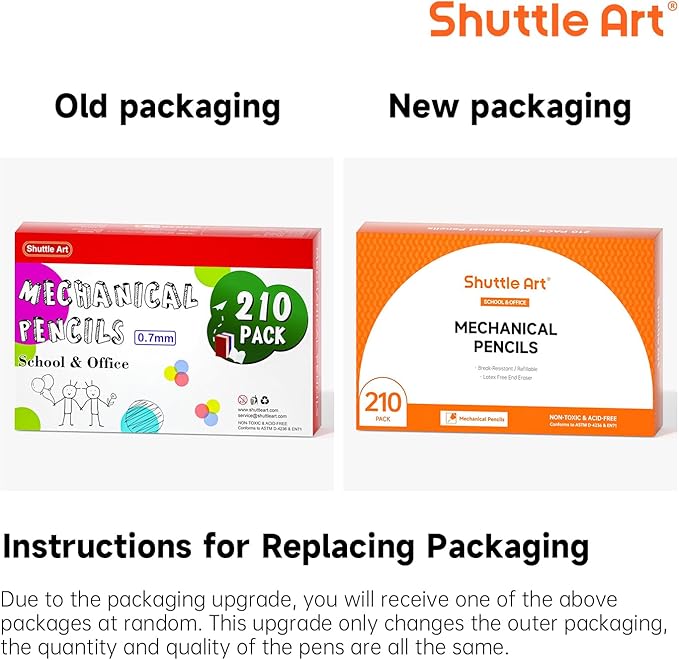 - 210 PACK VALUE SET: Shuttle Art 0.7mm Mechanical Pencils bulk set comes with 210 pack HB #2 mechanical pencils in 6 different barrel colors (35 pack of each color), perfect for daily writing and drawing at home, school and office
