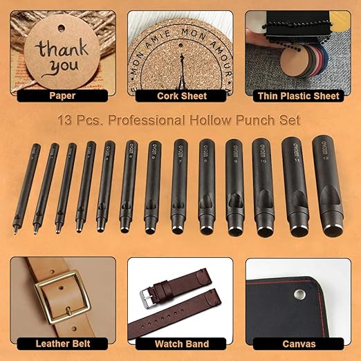 - These sizes are especially suitable for punching for leather belt, Watchband, Leather strap, And thin rubber, Plastic sheet,Canvas ,Clothing,Paper Etc.