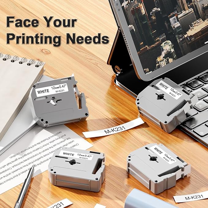 - Better effect and More affordable. Equivalent to Brother P touch M tape M231 MK231 M-K231 M-231 MK-231 M-K231S model (non brother genuine ptouch tape).Indoor Use: M-231 ½” (0.47") black-on-white tape Non-laminated M label tape is easy to apply to different surfaces in indoor like office, home, school, warehouse for labeling files, folders, shelves, books, cabinets, accessories, etc