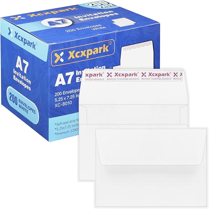 - 200PACK A7 ENVELOPES BULK - Package includes 200 PCS A7 invitation envelopes in dimension of 5.25 x 7.25 inches and it’s compatible with 5x7 cards, great A7 envelopes are great for invitations, papers, photos, documents, wedding invitation, birthday, baby shower.