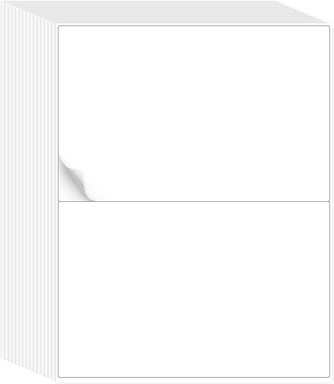 L LIKED Half Sheet Shipping Labels, 2 per Sheet, 200 Labels, 5.5 x 8.5 inch, for Laser & Inkjet Printer (100 Sheets)