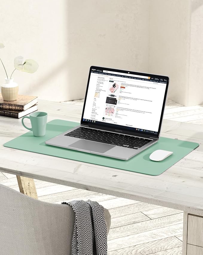 YSAGi Non-Slip Leather Desk Pad, Waterproof Laptop Computer Desk Keyboard Mat, Table Protector Blotter Mat, Large Mouse Pad for Office/Work/Home/Decor(Pale Green, 23.6" x 13.7")
