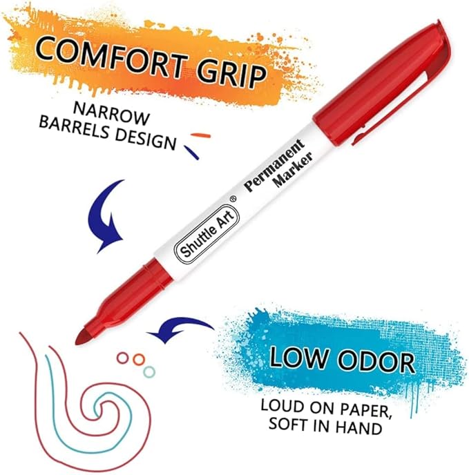 - Recommended Uses For Product : Shuttle Art permanent markers are ideal for detailed marks,drawing, writing, coloring, scrap booking, doodling, filling in paper, plastic, metal and most other surfaces that allows you to show off your creative side. Shuttle Art permanent markers are ideal for detailed marks,drawing, writing, coloring, scrap booking, doodling, filling in paper, plastic, metal and most other surfaces that allows you to show off your creative side.