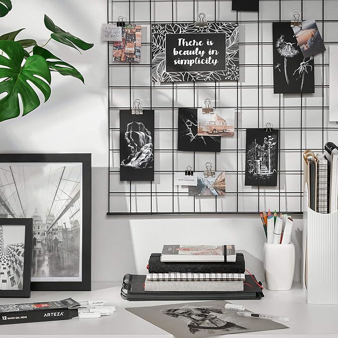 ARTEZA White Gel Pens Set, Pack of 12, White Rollerball Pens for Drawing and Writing, White Gel Pens for Artists