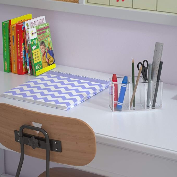 - ACRYLIC PEN ORGANIZER - Perfect for holding pencils, pens, highlighters, markers, scissors and other desktop office supplies. The tall sections keep your items upright, tucked away, and clutter free, all held together in one convenient location!