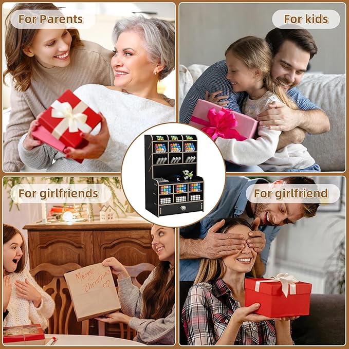 - 【STRONG & STURDY ORGANIZER】: Made of wooden board materials, sturdy construct, safe and nontoxic. Assembled chimeric design, strong and durable. Superb craftsmanship with specially varnished for glossy surface, excellent touch feeling and funny DIY design makes it be a perfect gift choice. The desktop organizer shelf is easy to clean and can protect from dust and water