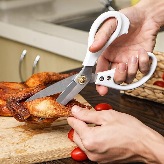- EASY TO USE AND TO MAINTAIN: The ergonomically designed handles of the kitchen shears will offer you a soft and secure grip while you use the multipurpose cutting tools.